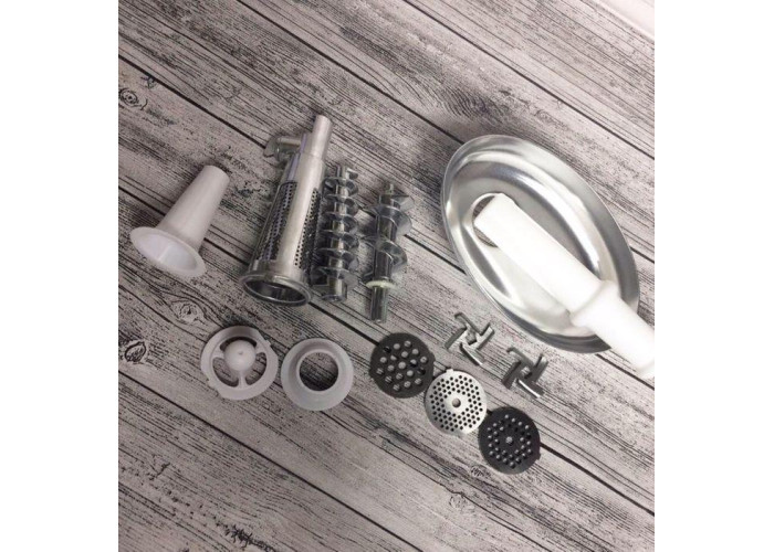 •Электрическая мясорубка Rainberg RB-674 с насадкой соковыжималкой (3000 Вт) предназначена для изготовления фарша из мяса, рыбы, грибов, нарезки овощей и фруктов, профилирования песочного и пельменного теста. Электромясорубка шнекового типа имеет функцию реверс, обратное вращение ножей, что предотвращает уплотнение продуктов внутри мясорубки и обеспечивает качественное измельчение. Корпус выполнен из нержавеющей стали и ударопрочного пластика, прорезиненные антискользящие ножки. Мощность двигателя 3000W. Два острых ножа из высококачественной нержавеющей стали. Набор решёток для приготовления фарша. Насадка для профилирования теста. Низкий уровень шума. Заводская упаковка, руководство по эксплуатации.