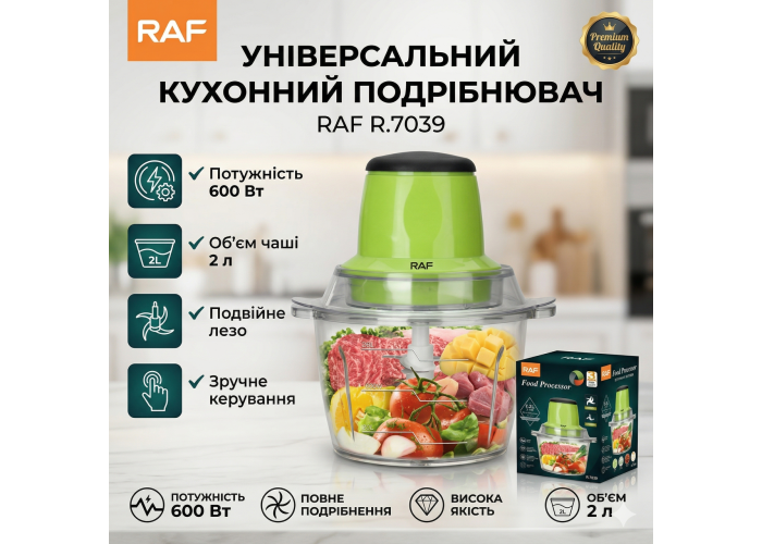 Кухонный измельчитель RAF R.7039 600 Вт 2 л мясорубка комбайн чоппер