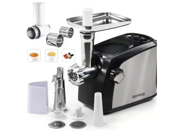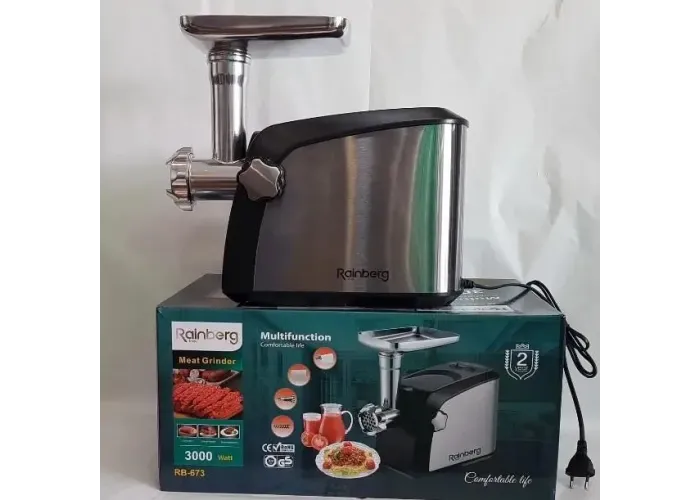 Мясорубка Rainberg RB-673 3000 Вт – это ваш надежный напарник и помощник на кухне. Качественная и доступная по своей стоимости модель электрической мясорубки от китайской фирмы Rainberg предназначена для приготовления домашнего фарша из мяса разных видов, овощей, рыбы, а также грибов, терками и шинковкой.
