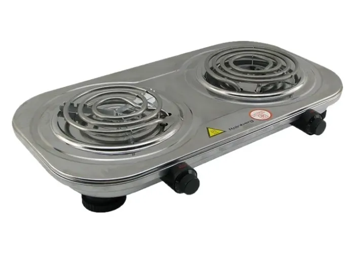 Компактная электроплита в элегантном дизайне — отличное решение как в качестве дополнительной варочной панели на даче или в доме. Простая и удобная в эксплуатации с двойной варочной панелью. Каждая плита настраивается индивидуально — можно использовать две пластины вместе или отдельно. Данная модель оснащена защитой от перегрева, не скользящими резиновыми ножками для безопасного использования.