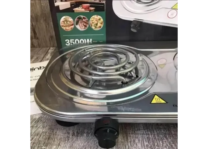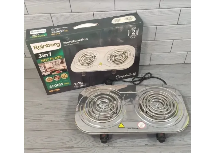 Электроплита Rainberg RB-008 двойная, настольная спиральная электрическая плита на две конфорки (3500 Вт)