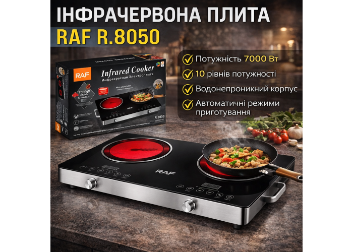 Инфракрасная плита электрическая на 2 конфорки с сенсорным управлением RAF R.8050 7000W