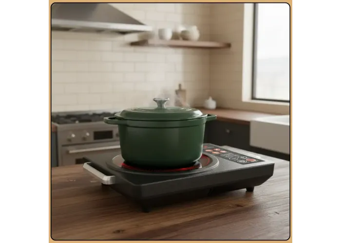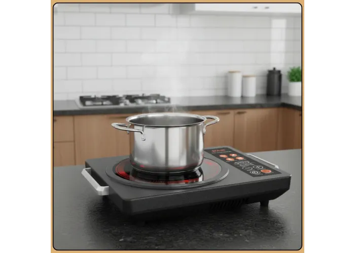 Плита оснащена таймером и функцией автоотключения, что повышает безопасность эксплуатации и делает использование более комфортным. Защита от перегрева гарантирует надежную работу даже при интенсивной нагрузке. Гладкая рабочая поверхность легко очищается и не требует сложного ухода.