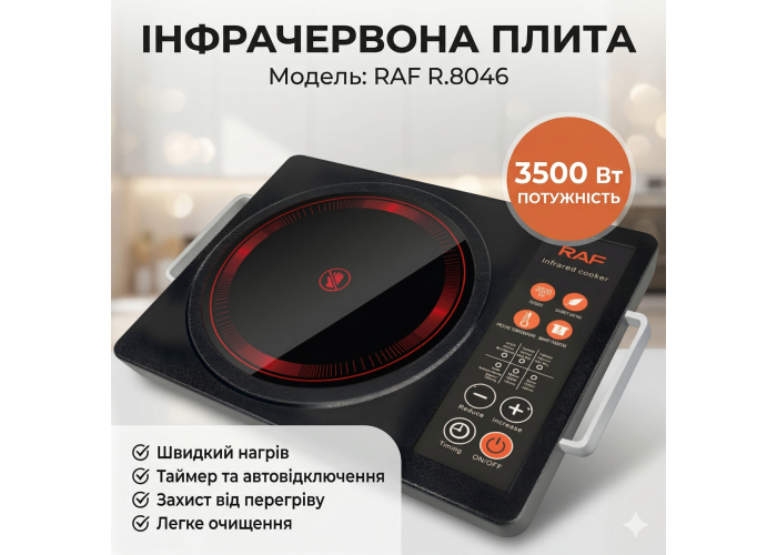 Одноконфорочная инфракрасная плита с таймером и автоотключением RAF R.8046 3500W