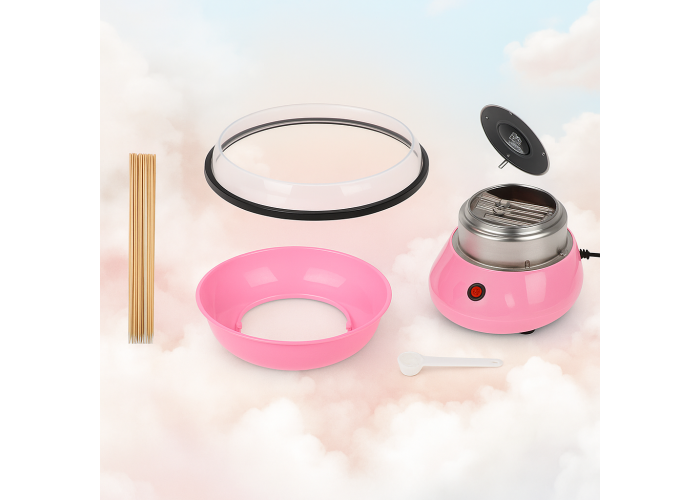 Аппарат для приготовления сладкой ваты - обеспечит приготовление в считанные минуты сахарной ваты в домашних условиях. Легкая сборка и короткое время предварительного нагрева 3-5 минут.Аппарат прост в использовании и приготовлении довольно увлекательное занятие. Можно, под присмотром взрослых, позволить приготовить сладкую вату даже ребёнку. Посмотреть за тем, как образуются тонкие сахарные волокна и потом они превращаются в пушистое сладкое облако, которое тут же можно съесть.Для приготовления можно использовать даже обыкновенный сахарный песок. Если есть возможность, то вы можете приготовить из специального сахара, для сахарной ваты.Изменить цвет ваты, можно с помощью простейшего пищевого красителя. Так же можно изменять и вкус, вы сами можете выбрать, каким цветом и с каким вкусом будет ваша сладкая вата.
