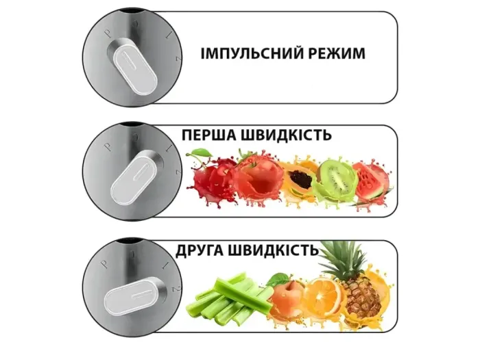 2 скорости + импульсный режим для разных продуктов;