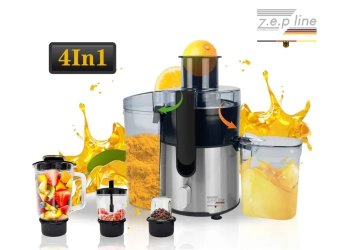 Соковыжималка Zepline ZP-122 — это многофункциональное устройство, которое сочетает в себе сразу четыре кухонные прибора: соковыжималка, блендер, кофемолку и измельчитель. Мощный двигатель 3000 Вт позволяет быстро и эффективно готовить свежие соки, смузи, супы, перемалывать кофе, специи и другие продукты.