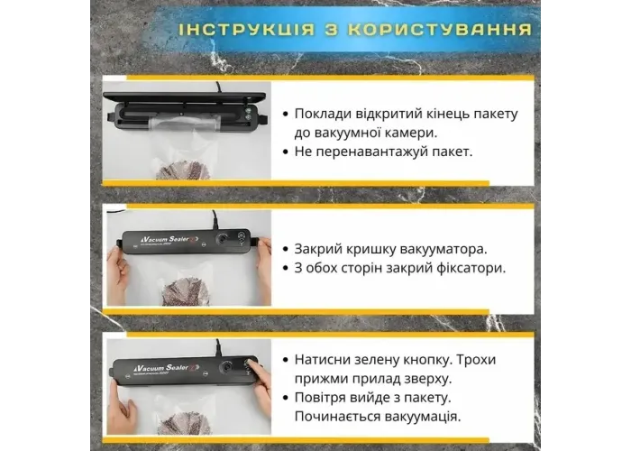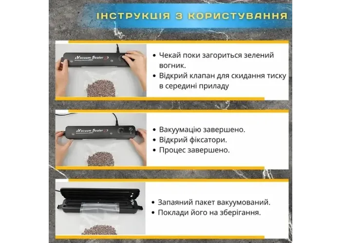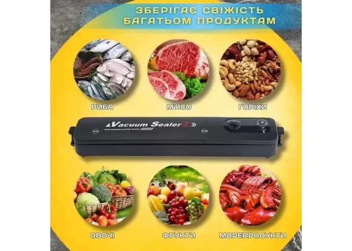 Длительное хранение продуктов. Вакуумный упаковщик подходит для фруктов, овощей, мяса, птицы, рыбы, различных круп и многого другого.