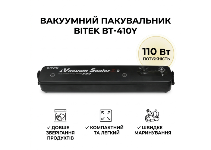 Домашний вакууматор для продуктов BITEK BT-410Y Кухонный вакуумный упаковщик Черный