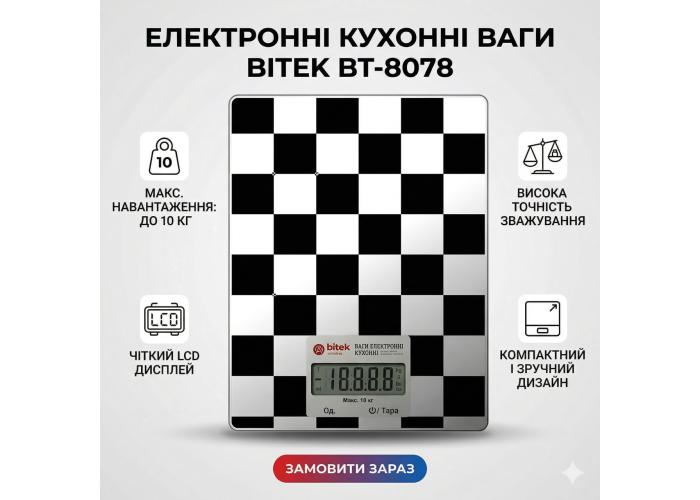 Кухонные весы с дисплеем электронные BITEK BT-8078 настольные весы до 10 кг для точного взвешивания