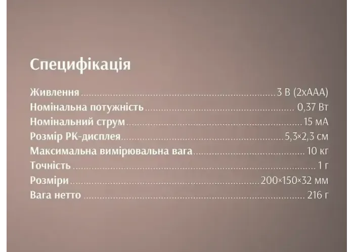 Бытовые электронные весы для точного взвешивания, отлично подходят для определения веса ягод, фруктов, овощей, конфет, мяса, а сахара, муки, гречихи, риса и других сыпучих продуктов. Так же устройство может запоминать вес тары (как мерную чашу можно использовать абсолютно любую подходящую по размеру емкость). Весы имеют большой LED дисплей, который обеспечивает четкое и яркое отображение результатов взвешивания. Возможность выбора различных мероприятий измерения веса (G – граммы, OZ – унции) делает эти весы универсальными и позволяет удовлетворить потребности различных клиентов. Функция обнуления тары позволяет точно взвешивать товары, убирая вес самих весов или упаковки. Весы работают от двух батареек типа AAA, а функция автоматического отключения помогает экономить заряд батареек: после периода бездействия веса самостоятельно отключаются, продлевая срок их работы Весы оснащены квадратной платформой со скюгленными краями размером 140х140 мм. Это обеспечивает удобное и стабильное место для размещения товаров, независимо от их формы и размера.