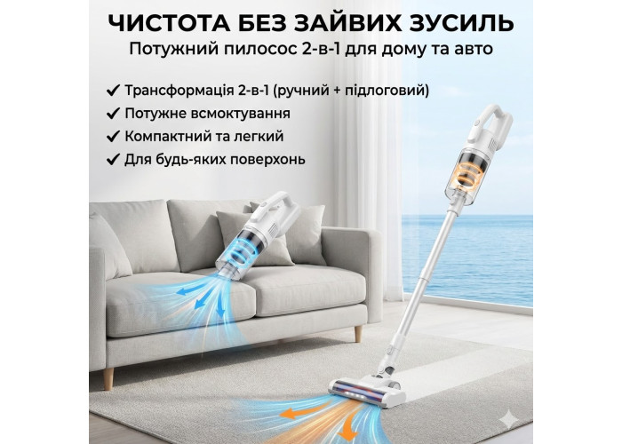 Беспроводной пылесос XL-1610 предназначен для сухой уборки в жилых помещениях и салоне автомобиля. Модель 2в1 может использоваться как вертикальный пылесос для уборки пола, так и как ручной пылесос для очистки мебели, труднодоступных мест и автомобиля.