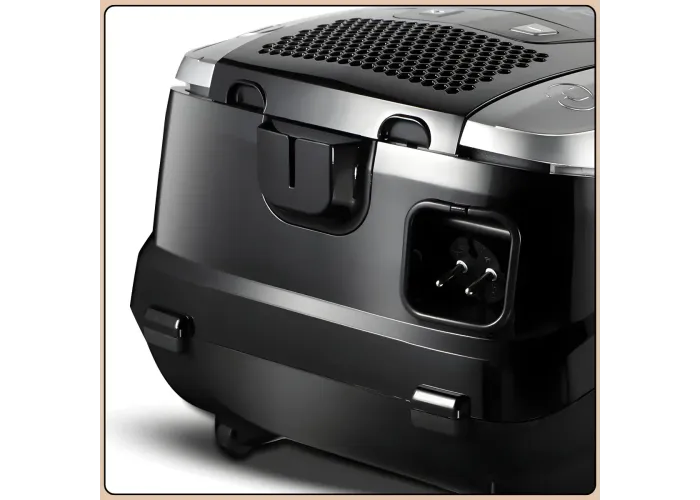 Пылесос оснащен телескопической трубой, которая регулируется по длине и облегчает уборку труднодоступных мест. Автоматическое сматывание кабеля упрощает хранение устройства, а индикатор работы позволяет контролировать его состояние. В комплект входят универсальная и щелевая насадки, что делает модель удобной для ежедневного использования в быту.