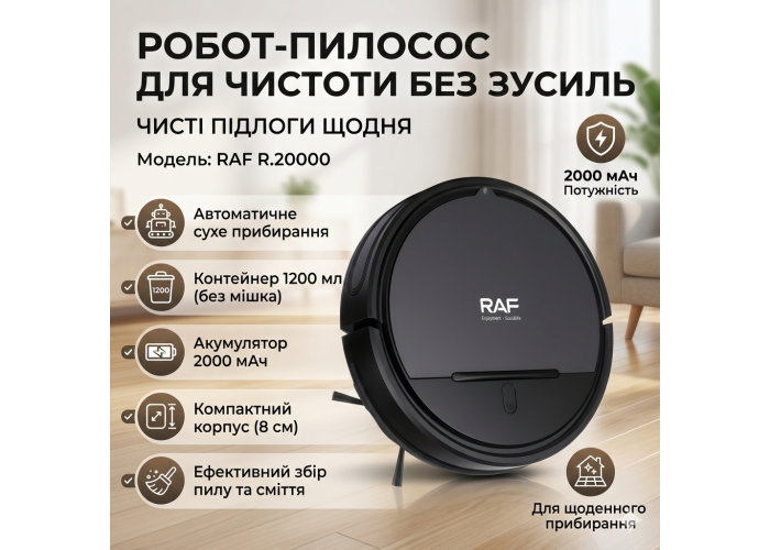 Робот-пылесос для сухой уборки с контейнером 1200мл RAF R.20000 2000мАч