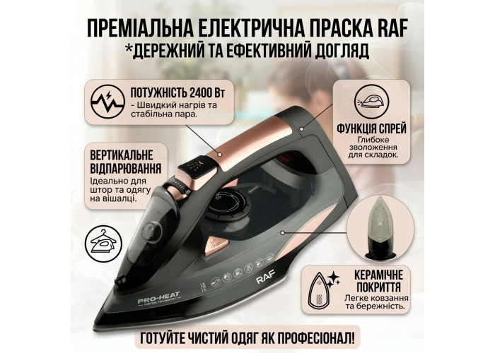 Электрический утюг с керамической подошвой и резервуаром 350 мл RAF R.1388 2400W