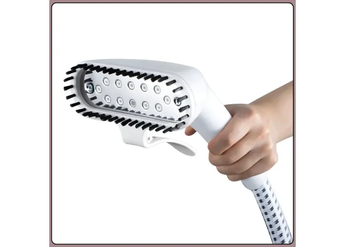 Модель оснащена регулируемой двойной стойкой из сплава, которая обеспечивает устойчивость и комфорт при отпаривании одежды разной длины. Паровая насадка с 8 отверстиями равномерно распределяет пар, эффективно разглаживая складки на различных типах тканей. Система защиты от сухого ожога автоматически отключает прибор при отсутствии воды, повышая безопасность эксплуатации.