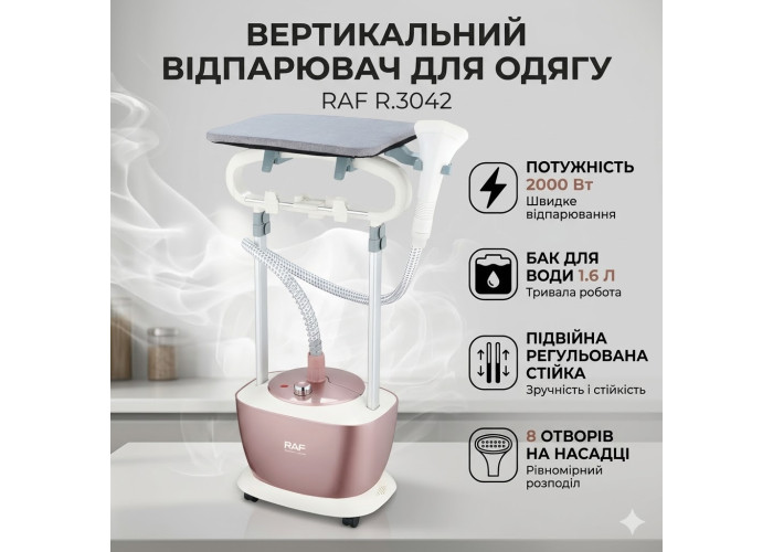 Напольный отпариватель для одежды с регулируемой стойкой и баком 1.6л RAF R.3042 2000W