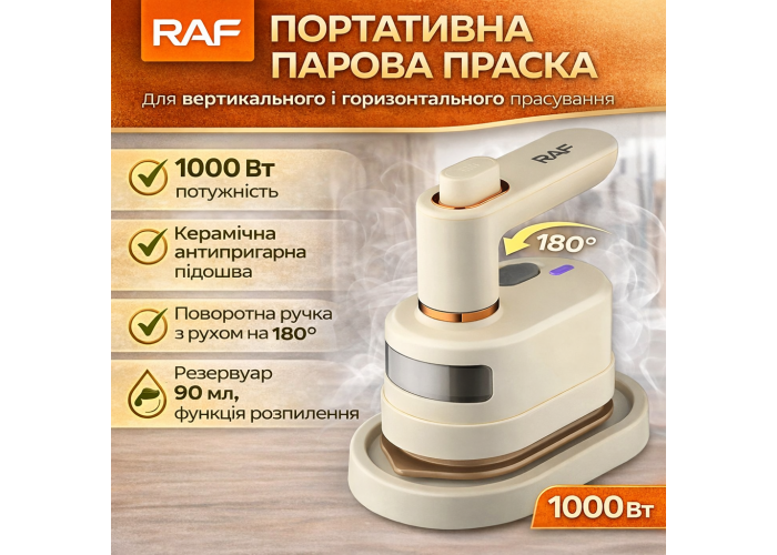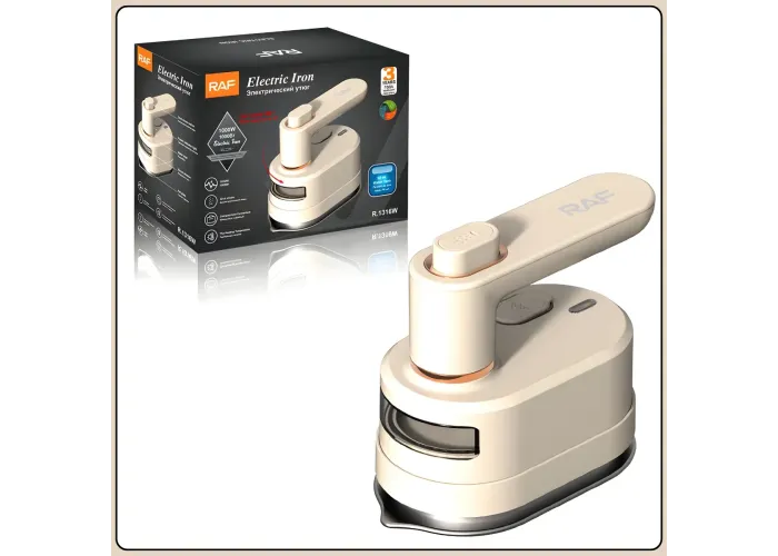 Портативный паровой утюг с антипригарной подошвой и поворотной ручкой 180° RAF R.1316 1000W