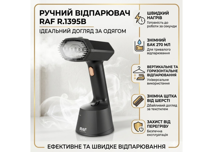 Ручной отпариватель с резервуаром 270 мл и защитой от пересыхания RAF R.1395B 1400W