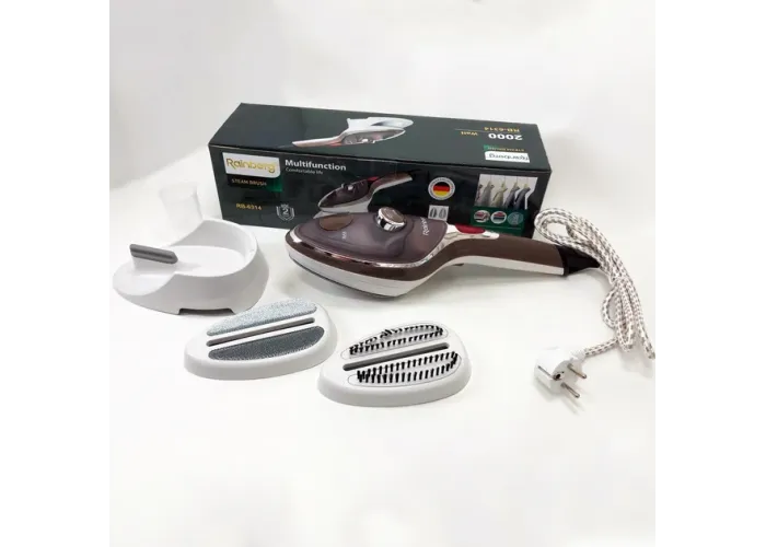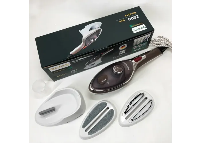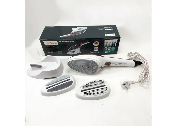 Ручной отпариватель для одежды Rainberg RB-6314 2000 Вт с двумя сменными насадками можно использовать дома, в офисе или в путешествии. Он вырабатывает непрерывный поток пара, который хорошо проникает в ткань и распрямляет складки, чистит, дезинфицирует и избавляет от неприятного запаха. Многофункциональность - самое главное качество этого бытового прибора. Он создан для эффективной очистки, дезинфекции и обезжиривания абсолютно различных поверхностей, независимо от их типа и назначения и может с легкостью применяться как для чистки одежды, так и для ухода за мягкой мебелью, мытья окон и кафеля. Преимущества: Отпариватель имеет компактные размеры и неприхотлив в обслуживании, идеален для использования как в домашних условиях так и в поездках. Отпариватель предоставляет возможность быстрой и качественной глажки без неудобной и громоздкой гладильной доски. У отпаривателя удобная не нагревающаяся ручка.