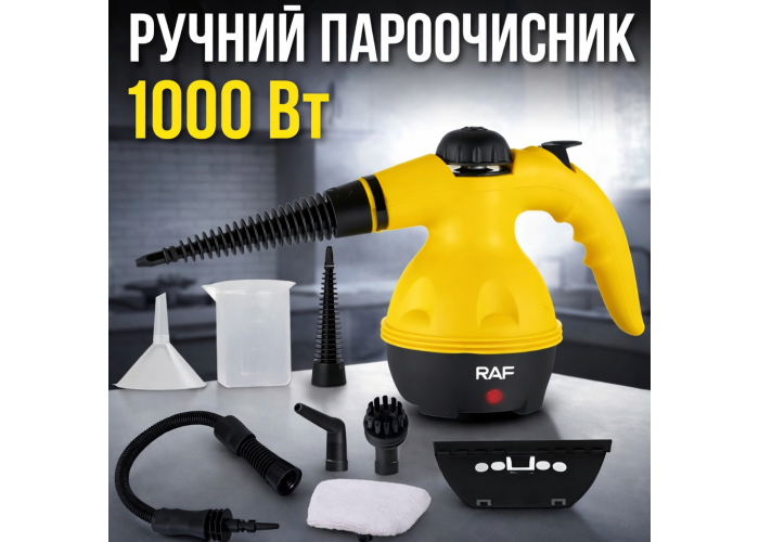 Ручной пароочиститель 1000 Вт с баком 350 мл и набором из 6 насадок RAF R.1028
