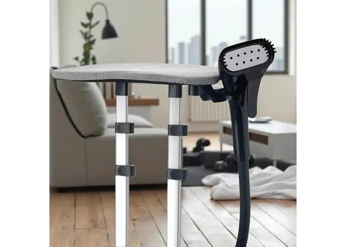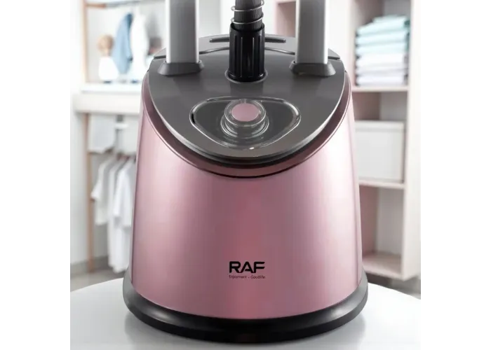 Конструкция оснащена регулируемой стойкой с вешалкой и встроенной гладильной доской, что делает процесс глажки максимально комфортным. Прозрачный резервуар объёмом 3,2 л позволяет следить за уровнем воды, а защита от сухого нагрева гарантирует безопасную эксплуатацию. RAF R-3048R сочетает функциональность, надёжность и современный дизайн.