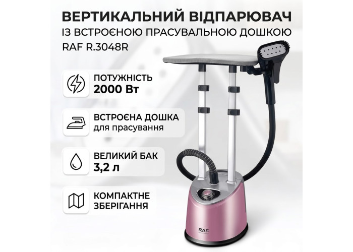Вертикальный отпариватель с гладильной доской и телескопической стойкой RAF R.3048R 2000Вт Розовый
