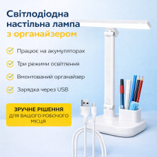 Лампа поворотна для дому настільна з органайзером на 2 акумуляторах 18650 DIGAD 1975 LED Біла/White