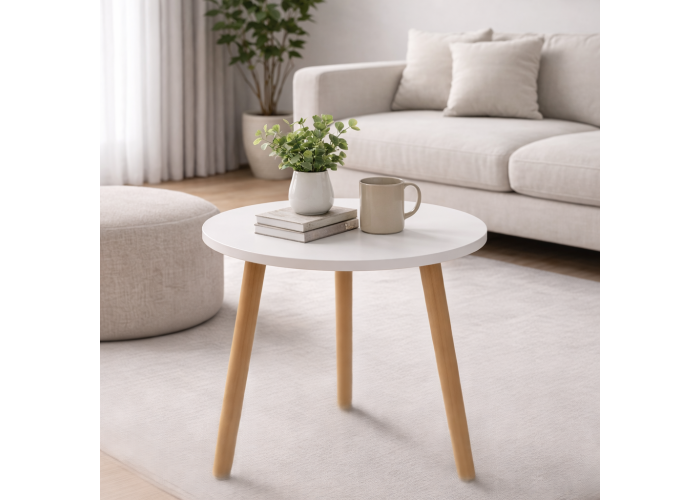 Інтер'єрний столик Grant DASH-1201 — компактний круглий столик у сучасному скандинавському стилі. Біла стільниця в поєднанні з ніжками під світле дерево робить його універсальним акцентом для вітальні, спальні або домашнього кабінету. Столик не перевантажує простір і підходить навіть для невеликих кімнат.