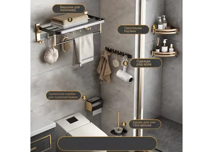 Набір полиць, тримачів і вішалок для ванної кімнати