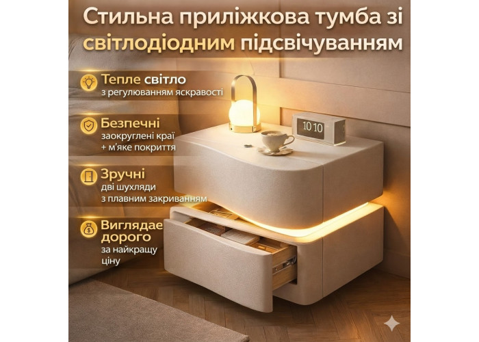 Приліжкова тумба з LED-підсвіткою — 1 шт.
