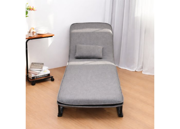 Компактні розміри дозволяють економити простір, а міцна металева конструкція забезпечує надійність і стабільність під час використання. М’яка оббивка та подушка у комплекті гарантують комфорт як для сидіння, так і для сну.