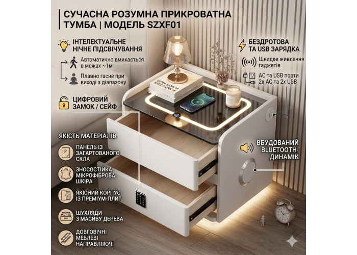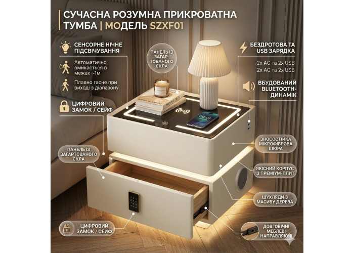 Смарт-тумба YJXF01 — це поєднання преміального дизайну, безпеки та сучасних технологій у вашій спальні.