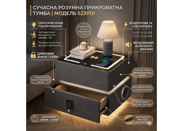 Смарт-тумба YJXF01 — це поєднання преміального дизайну, безпеки та сучасних технологій у вашій спальні.