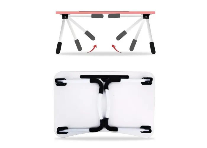 Комп'ютерний столик має протиковзні ніжки, які забезпечують надійну фіксацію на ліжку, дивані або будь-якій іншій поверхні. Він обладнаний заглибленням для планшета, у якому поміститься пристрій будь-якої моделі, що дає змогу насолоджуватися фільмами або мультфільмами без потреби утримувати його в руках. Крім того, столик має знімний підсклянник, щоб у вас завжди був напій під рукою для комфортнішої роботи або відпочинку.