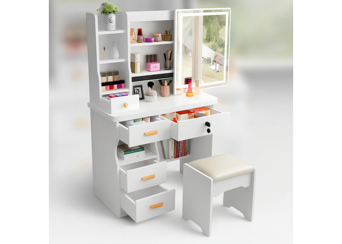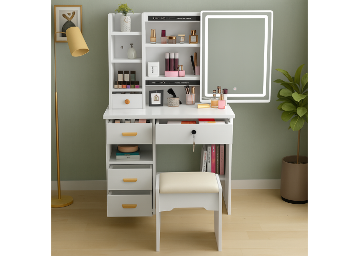 Туалетний столик STL-MD 87 — це зручне та функціональне місце для макіяжу та щоденного догляду. Вбудоване LED-дзеркало забезпечує рівномірне освітлення, а продумана система зберігання допомагає підтримувати лад.