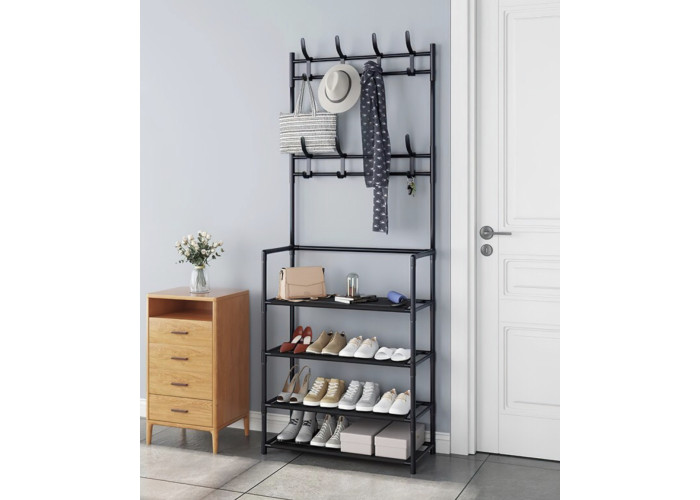 Підлогова вішалка-перефарбована альтернатива нагромадженню в шафах! Особливо це актуально для малогабаритних квартир, де постійно бракує простору для зручного розміщення одягу. Ця модель вирізняється високою якістю виготовлення деталей забезпечує міцність і стійкість конструкції. Стійка комплектується полицями для взуття.