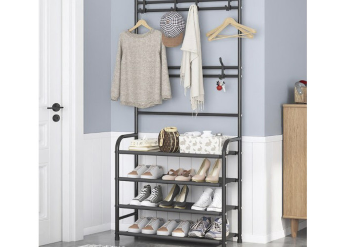 Під одягом на полицях вішалки зручно зберігати взуття та аксесуари