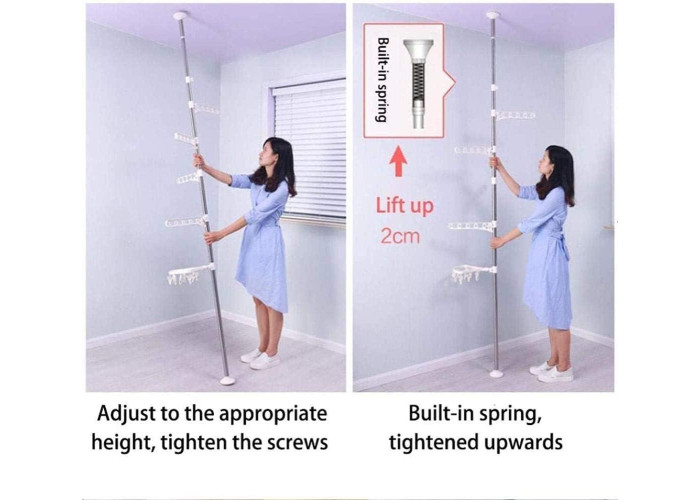 Встановлення: відрегулювати висоту опорного стрижня на 2 см вище висоти стелі; підніміть опорну штангу близько до стелі, встаньте прямо та міцно тримайтеся.