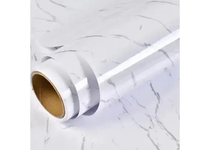 Самоклейна плівка з мармуровим декором — це стильне та практичне рішення для оновлення інтер'єру вашої кухні. Довжина плівки становить 3 метри, а її білий мармуровий візерунок надає елегантності та вишуканості будь-яким меблям.