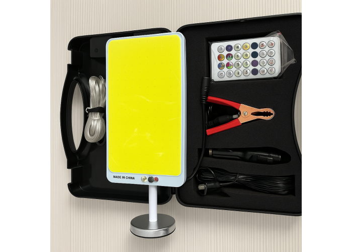 Шукаєте ідеальне рішення для освітлення табору, нічної риболовлі або відпочинку на природі? Набір ZJ-HW006 — це потужна автономна світлова станція, яка працює від вбудованого акумулятора, сонячної енергії або автомобіля.