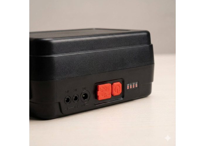Максимальна автономність: Заряджається трьома способами — від сонця (панель на кейсі), від мережі/PowerBank (USB) або від автомобільного акумулятора 12 В (клемми та прикурювач у комплекті).