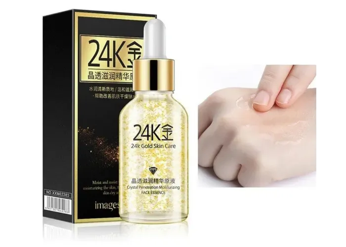 Основні активні засоби гіалуронова кислота та золото. Гіалуронова кислота — зволожує, живить і розрівнює текстуру шкіри, надає їй рівний тон. Золото в складі сироватки чинить потужну омолоджувальну дію, ефективно підтягує шкіру та живить її, надає світіння зсередини.