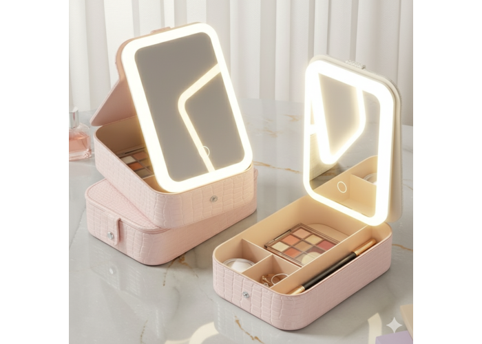 Ознайіть свій щоденний макіяж за допомогою стильної косметички з LED-дзеркалом, де зручно зберігати косметику та легко створювати бездоганний образ у будь-якому місці.