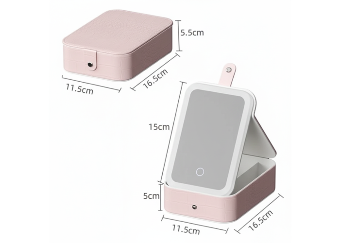 Вишукана штучна шкіра та стильний дизайн підкреслять ваш неповторний стиль. Забудьте про незручності пошуку дзеркала та поганого освітлення — ваша нова косметичка завжди під рукою. Завдяки акумулятору та USB-заряджанню дзеркало буде готове до використання в будь-який момент. Організуйте свою косметику елегантно та зручно.