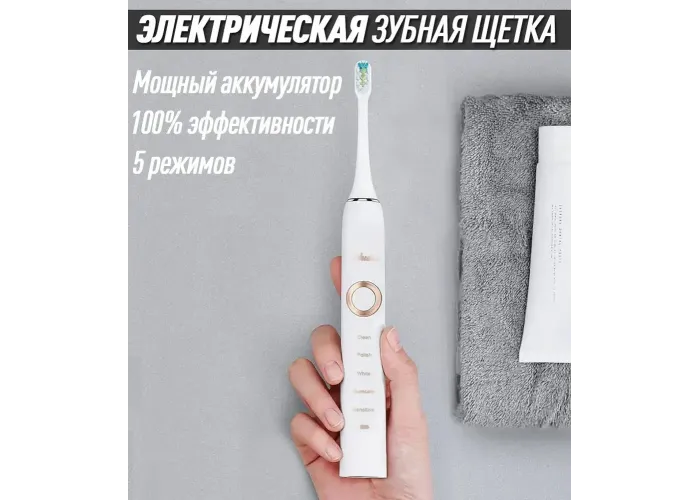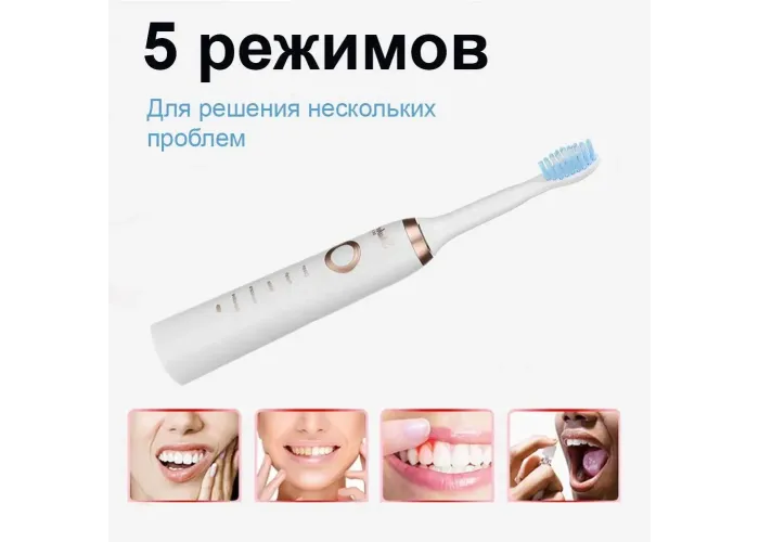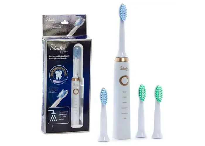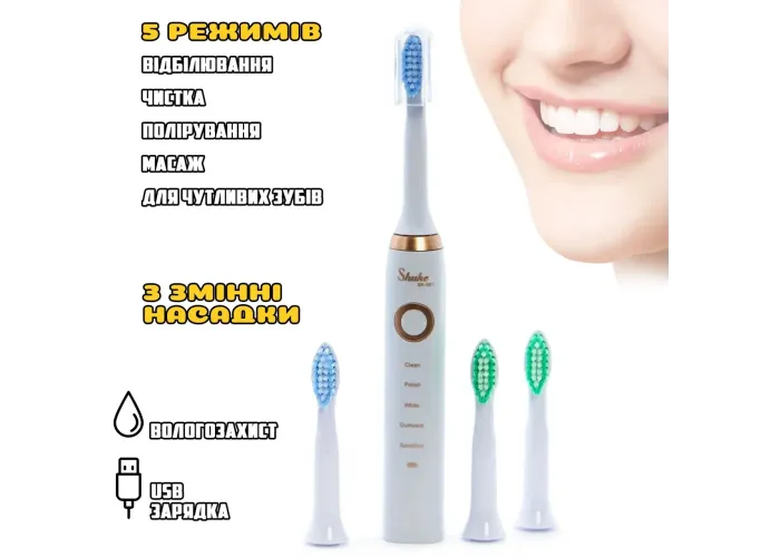 Електрична зубна щітка ультразвукова Shuke SK601-S акумуляторна щітка для зубів з 4 насадки Біла