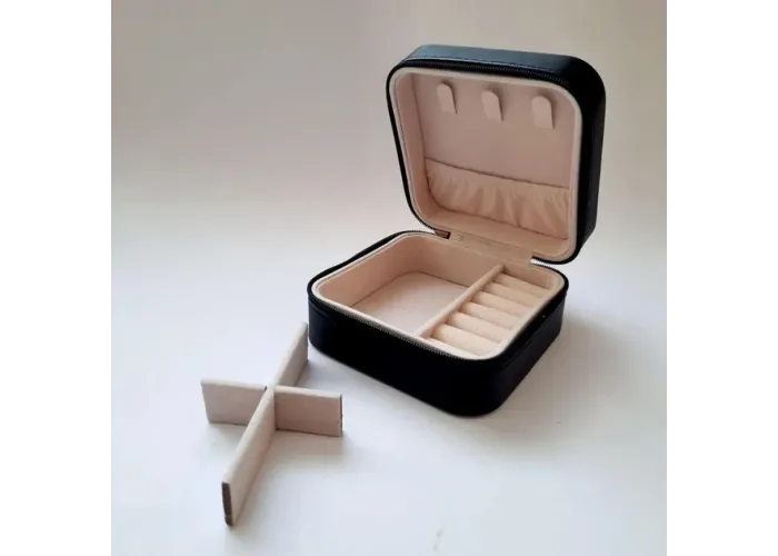 Скринька для ювелірних прикрас закривається на блискавку, що дуже зручно, Ваші прикраси не загубляться під час транспортування.Відмінне рішення для зберігання прикрас, ні дитина ні домашня тварина не зможуть "пограти" з прикрасами. Компактна, невелика, але вкрай містка.