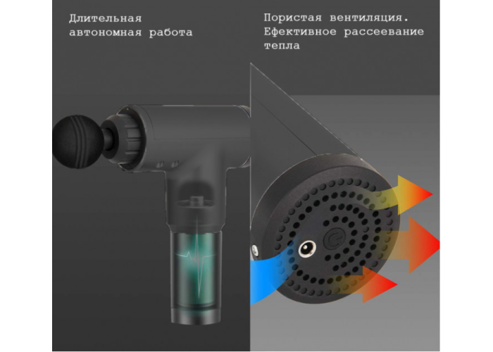 Масажер Fascial Gun HF-280 має сильний шумозаглушувальний двигун, систему вентиляції з декількома вентиляційними отворами, високу продуктивність