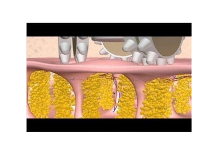 2. Сильні, але досить м'які ролики зубчастої форми, глибоко масажують ваші м'язи й обертаються з дуже високою частотою, у такий спосіб розбиваючи жирову тканину.