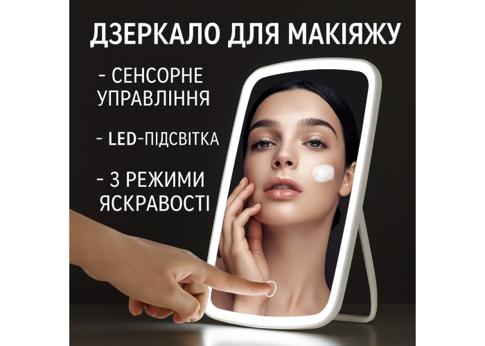 Це настільне дзеркало для макіяжу — зручний аксесуар для точного нанесення косметики та догляду за шкірою в домашніх умовах.
